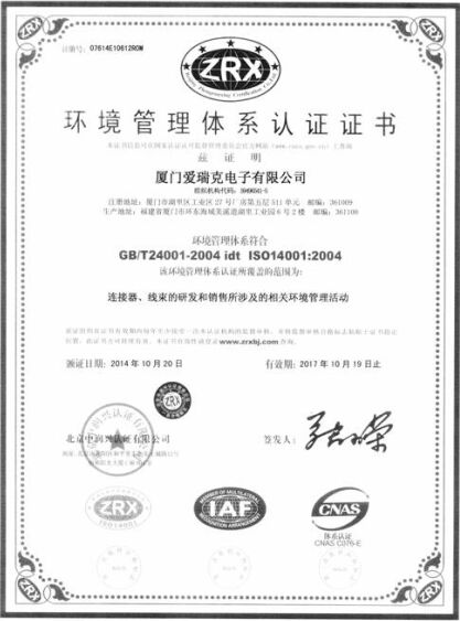 ISO14000環(huán)境マネジメントシステム認(rèn)証証明書(中國語版)
